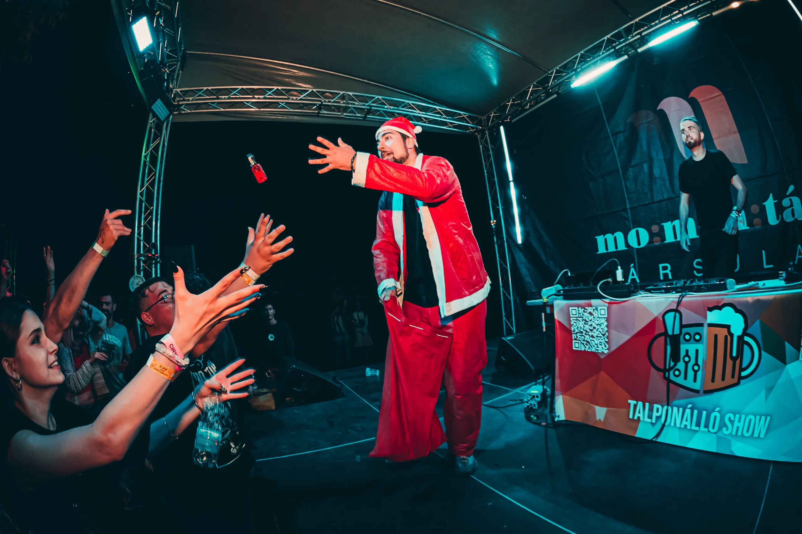 Van az a pillanat a fesztiválon, amikor bulizol egy eszetlen nagyot, de közben csak vigyorogsz, és nem hiszed el, ami zajlik körülötted. Amikor öt percen belül a harmadik állatság történik. Amikor most kaptál el egy ívesen repülő féldecis kiskevertet, amit egy Mikulás dobott feléd a színpadról a Last Christmas-remix hangjaira, de ki sem tudtad posztolni, mert máris táncoslányok özönlötték el a színpadot. Persze szívesen táncolnád te is a koreót, de meglátod, hogy valaki éppen gulyást készít a backstage mellett. És mindeközben életed slágerei dübörögnek. Na ez a Talponálló Show - két DJ, egyetlen este, végtelennyi történet.